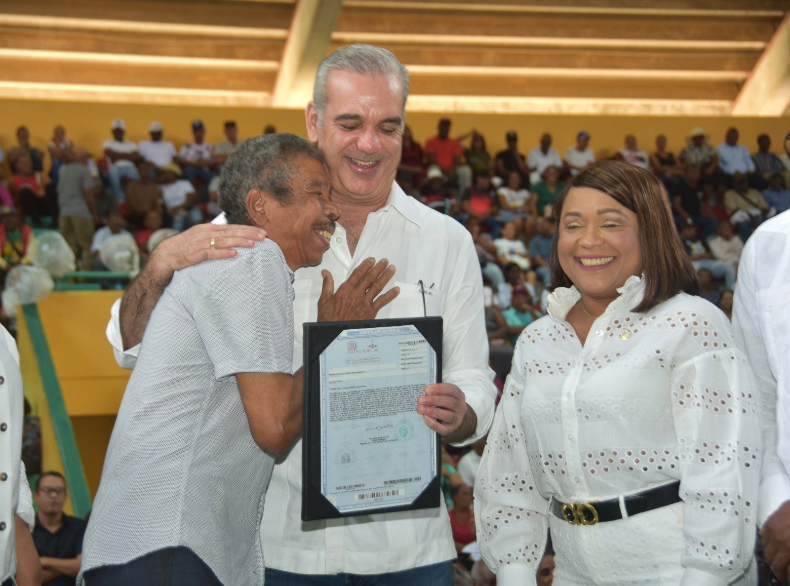 San Pedro de Macorís.— En un paso decisivo hacia la justicia social, el presidente Luis Abinader entregó este domingo 2,315 títulos de propiedad en San Pedro de Macorís, beneficiando de manera directa a unas 10,000 personas que, tras años de espera, hoy aseguran legalmente sus hogares y dan un giro definitivo a su calidad de vida, al convertir en derecho la incertidumbre de años y beneficiar a los sectores El Patio, Batey Central, Cacara Jíbara, Colina I y II, 24 de Abril, Villa Centro, Batey Centro e Ingenio Santa Fe.