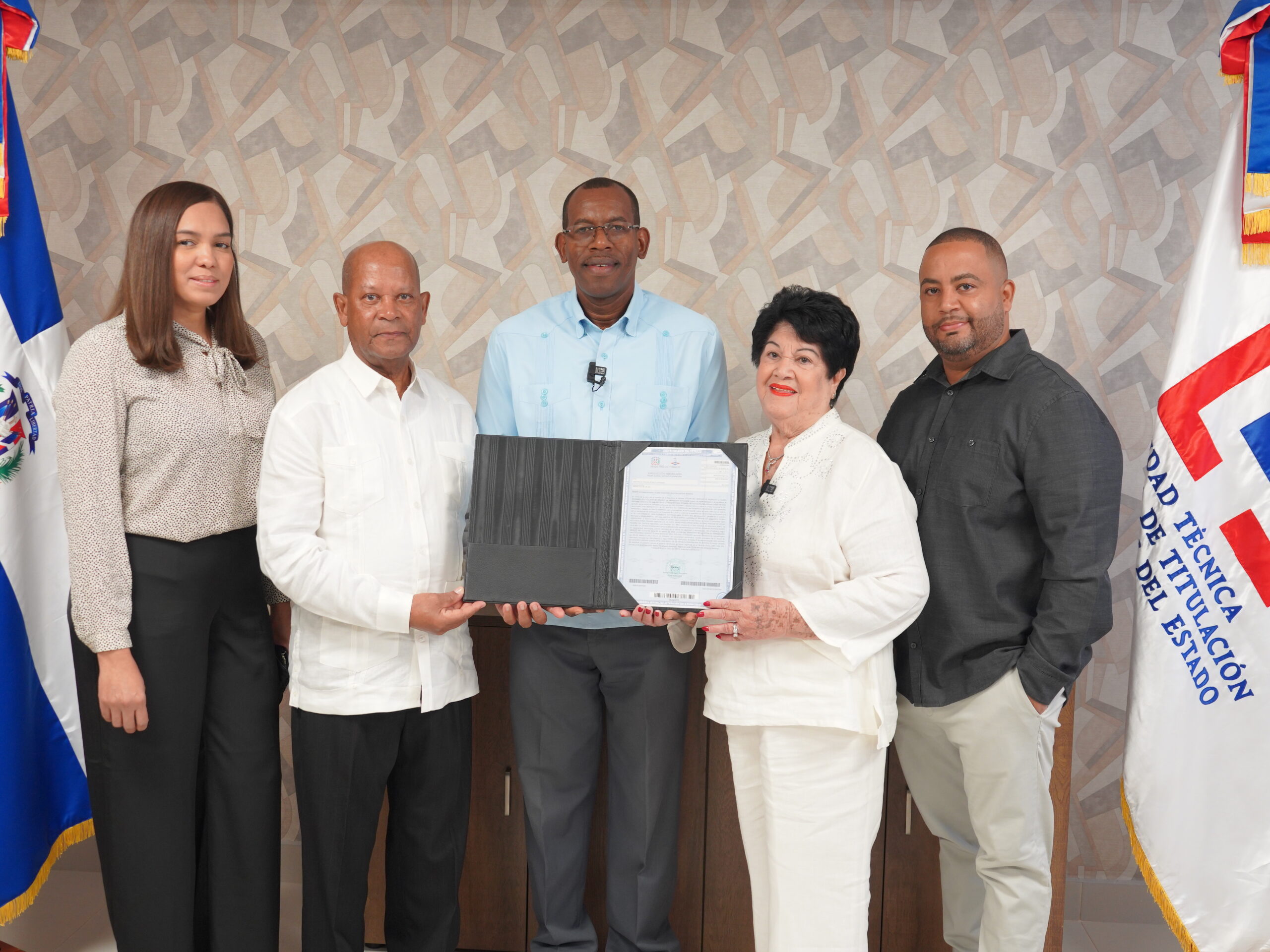 Director entrega título esposo Danilo y Gloria Rosario residentes en USA