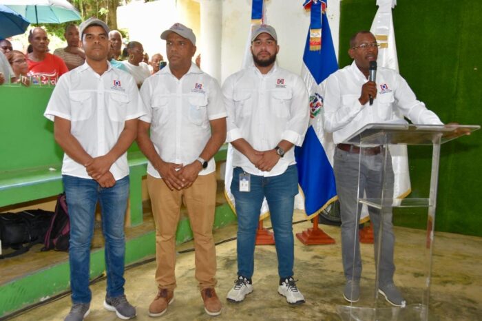 Al lanzamiento del proyecto de titulación en Los Frailes, asistieron José Moya, subdirector de Bienes Nacionales; Alexis Jiménez, diputado; coronel Rijo de la Policía Nacional; Rubén Céspedes, subdirector regional Este de la UTECT, las regidoras, Ana Durán, Aileen Decamps y Martin Ventura, presidente de la Federación de Juntas de Vecinos de Los Frailes.