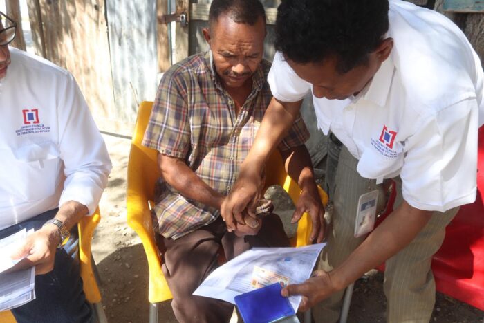 El subdirector de la Regional Sur de la UTECT, Marino Vilchez, encabezando un equipo de la institución para impactar a estas familias por instrucciones del director ejecutivo Duarte Méndez, que sigue las políticas públicas del presidente Luis Abinader de cara a la gente.