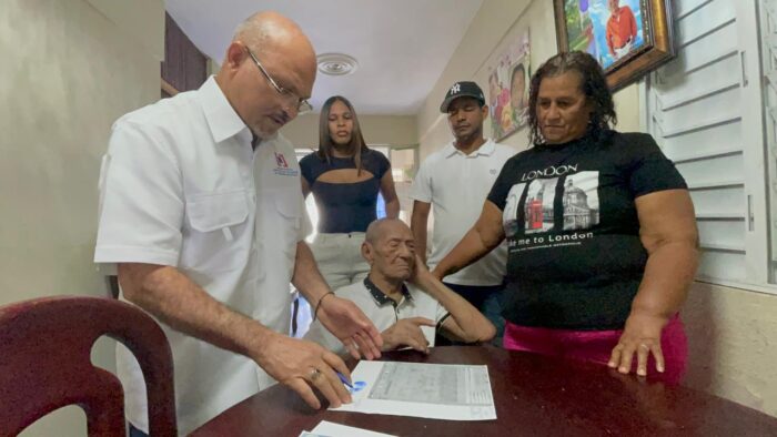 Caba, al llegar al hogar del señor Ramos, quien está ciego y padece de otras complicaciones de salud, expresó que esta entrega forma parte de los 1,055 beneficiarios de títulos definitivos de propiedad que estaban pendientes de la entrega que hizo el presidente Abinader el 29 de junio en La Yaguita de Pastor de esta ciudad.