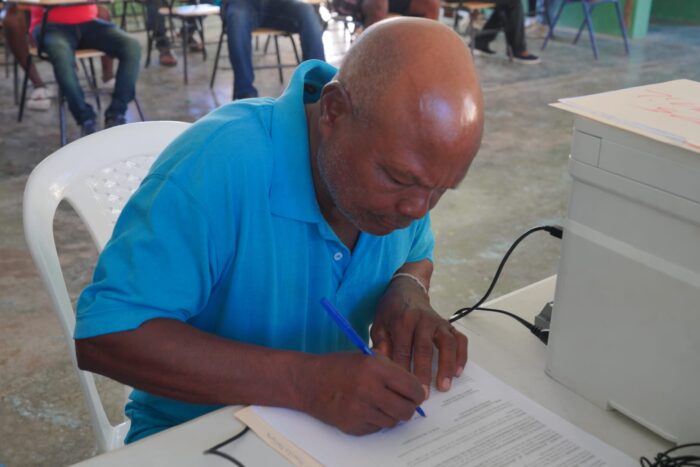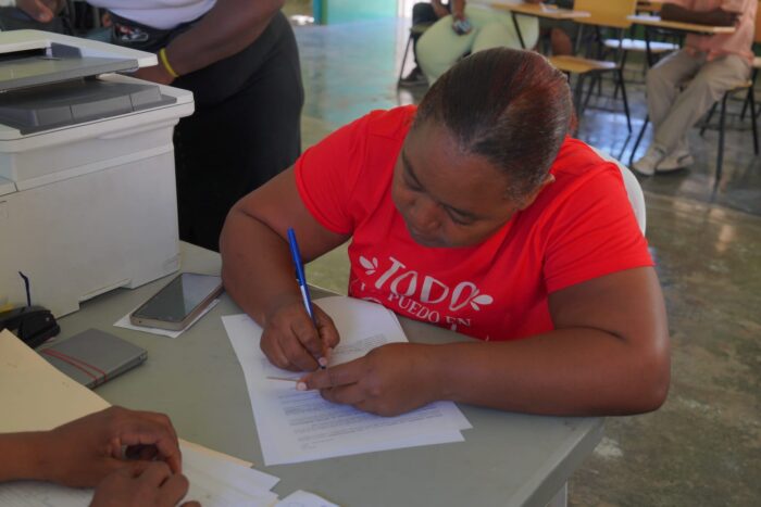 Azua, RD.– El Gobierno a través de la Unidad Técnica Ejecutora de Titulación de Terrenos del Estado (UTECT) realizó con éxito el operativo de firmas en la comunidad de Guayacanal, municipio Pueblo Viejo, que permitirá otorgar títulos definitivos a 759 familias.