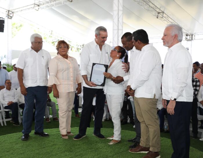 En representación de los titulados Silvia González expresó su agradecimiento al presidente Abinader por la entrega de los títulos con lo cual el Gobierno convierte en realidad el anhelo de 53 años años de estas familias.
