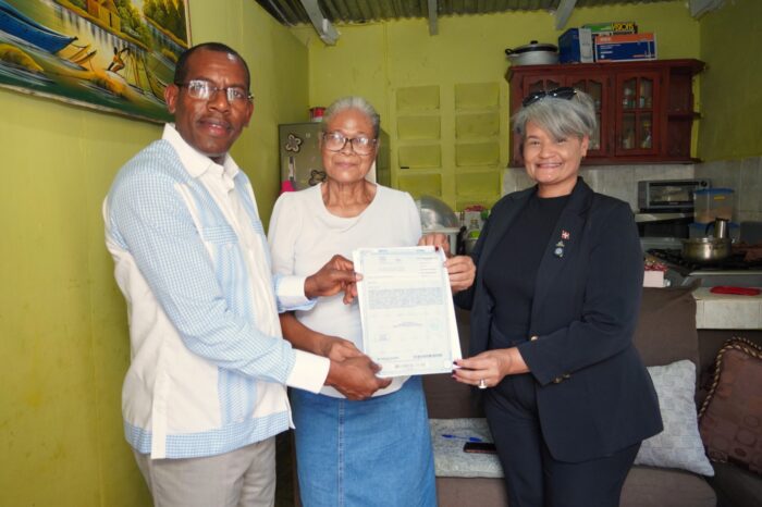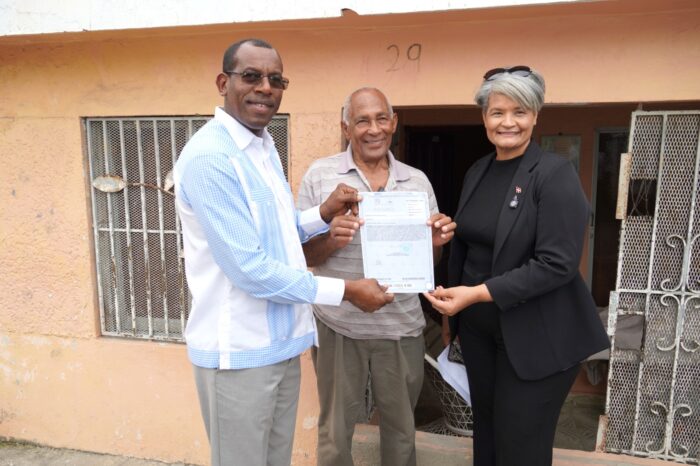 San Pedro de Macorís- La Unidad Técnica Ejecutora de Titulación de Terrenos del Estado (UTECT) llevó el programa “Títulos en Casa” a la provincia San Pedro de Macorís haciendo la entrega de sus Títulos de Propiedad a seis familias de distintos sectores, cuyos beneficiarios finales presentaban una condición de salud especial que impidió su traslado a los actos masivos que encabeza el Presidente de la República Dominica, Luis Abinader.