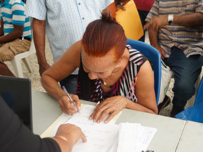 Los beneficiarios de este operativo de firmas, Bienvenido Rosario y Adriano Bienvenido Matos, agradecieron el trabajo realizado por las brigadas de la UTECT.